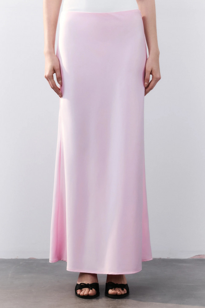 Длинная женская юбка-годе макси полуприлегающего кроя из мягкой и приятной к телу ткани с гладкой атласной фактурой. Классическая средняя посадка подчеркивает фигуру и акцентирует внимание на талии. Застежка на потайную молнию сбоку. Без карманов, разрезов и шлевок для ремня.