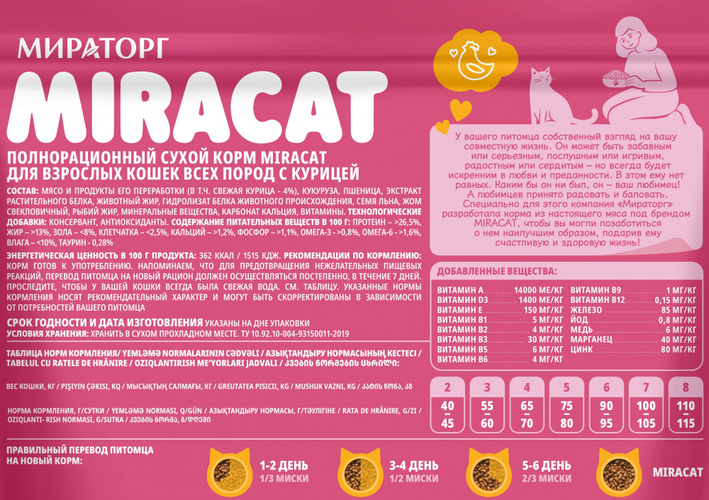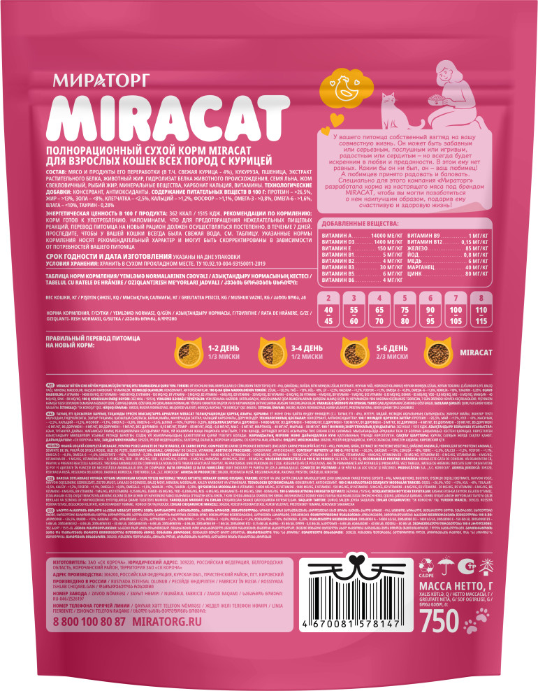 Miracat Корм сухой полнорационный для взрослых кошек всех пород с курицей
