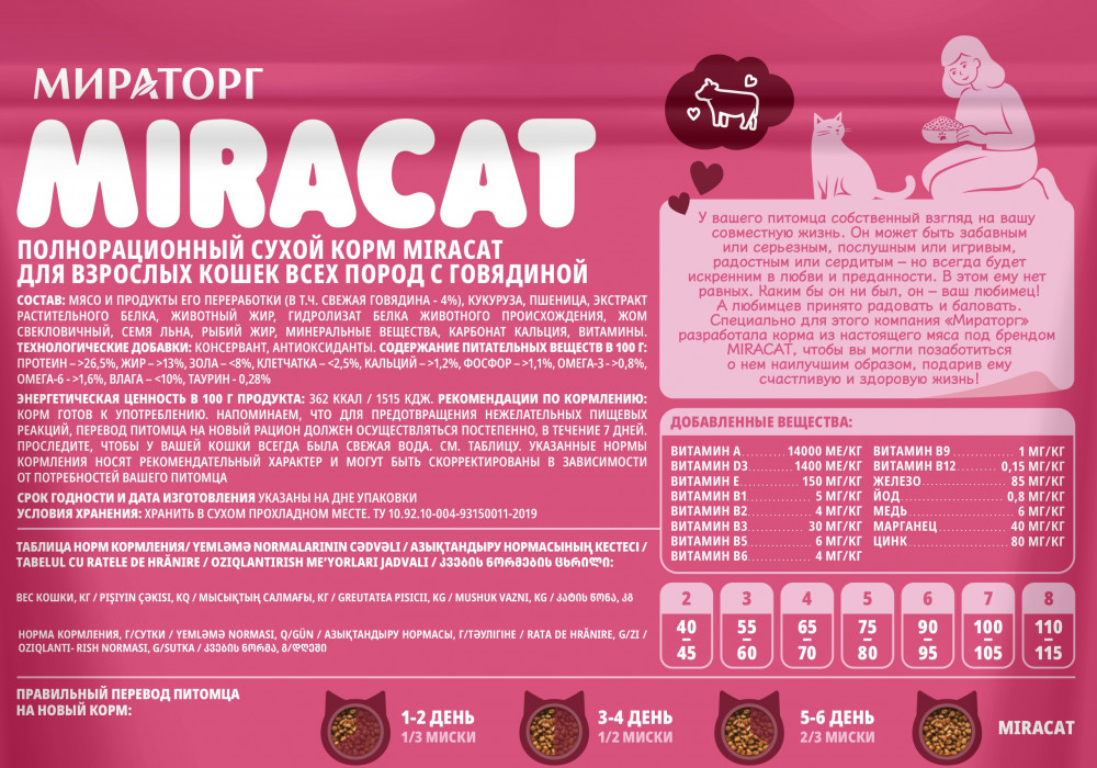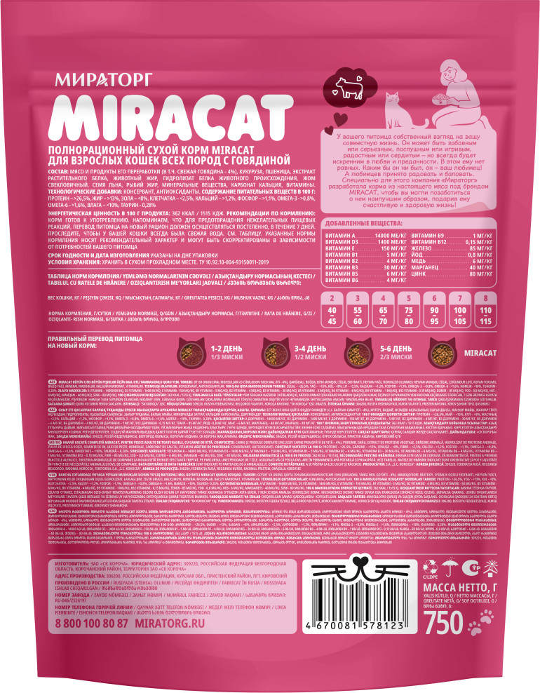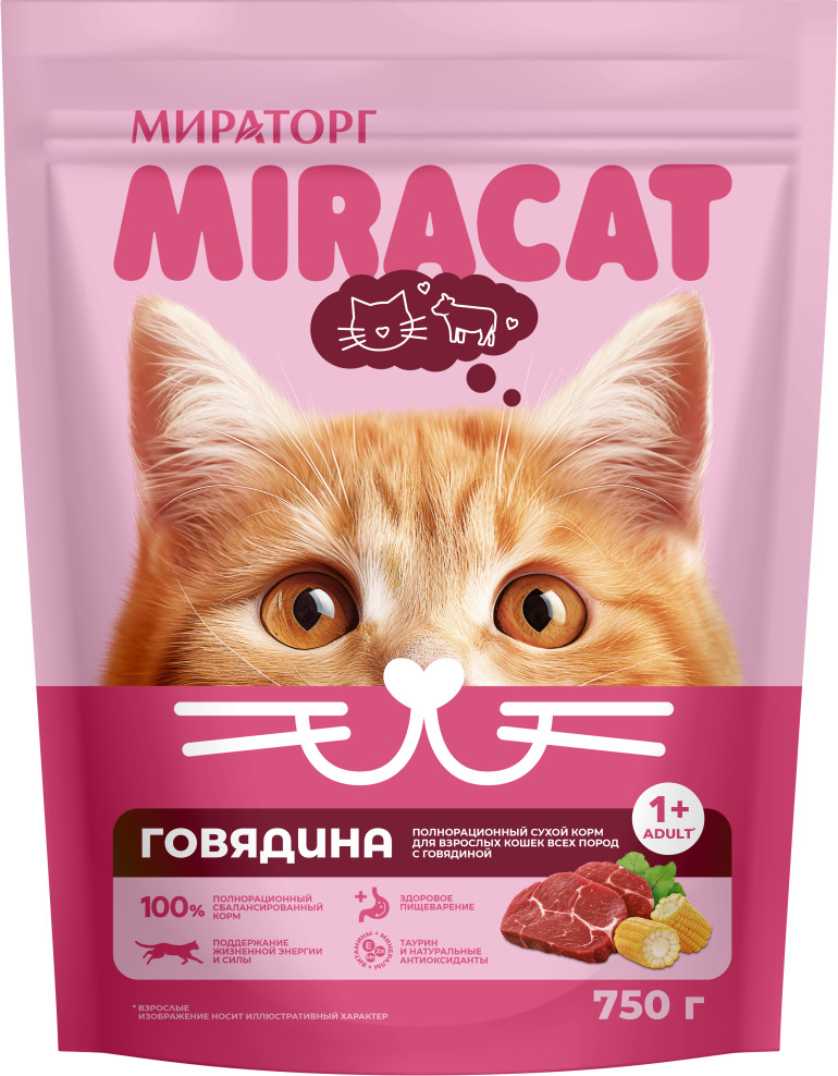 Miracat Корм сухой полнорационный для взрослых кошек всех пород с говядиной