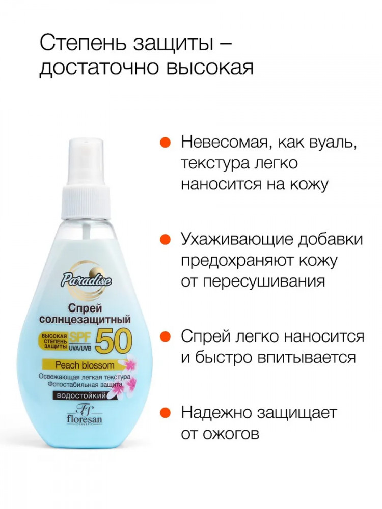 Floresan Спрей солнцезащитный SPF 50 «Peach blossom»