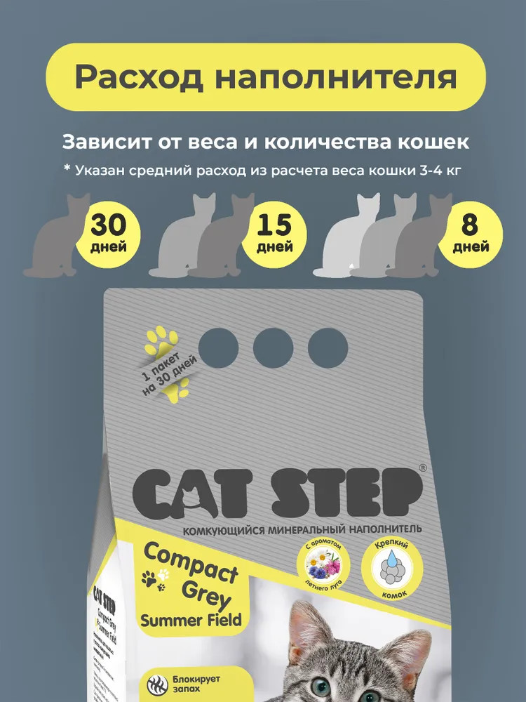Cat Step Наполнитель комкующийся минеральный «Compact Grey Summer Field»