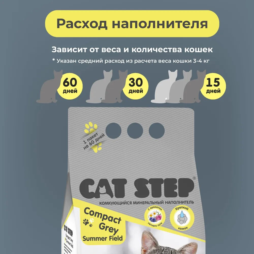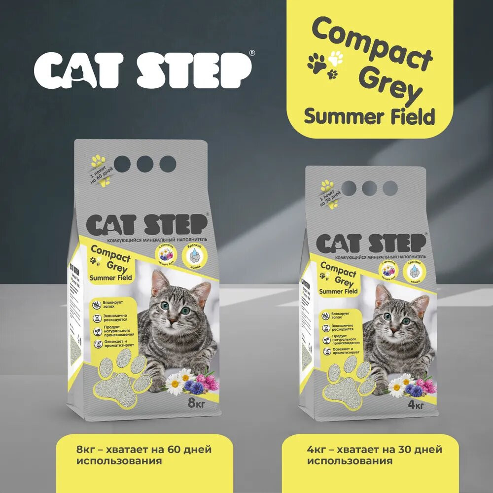 Cat Step Наполнитель комкующийся минеральный «Compact Grey Summer Field»