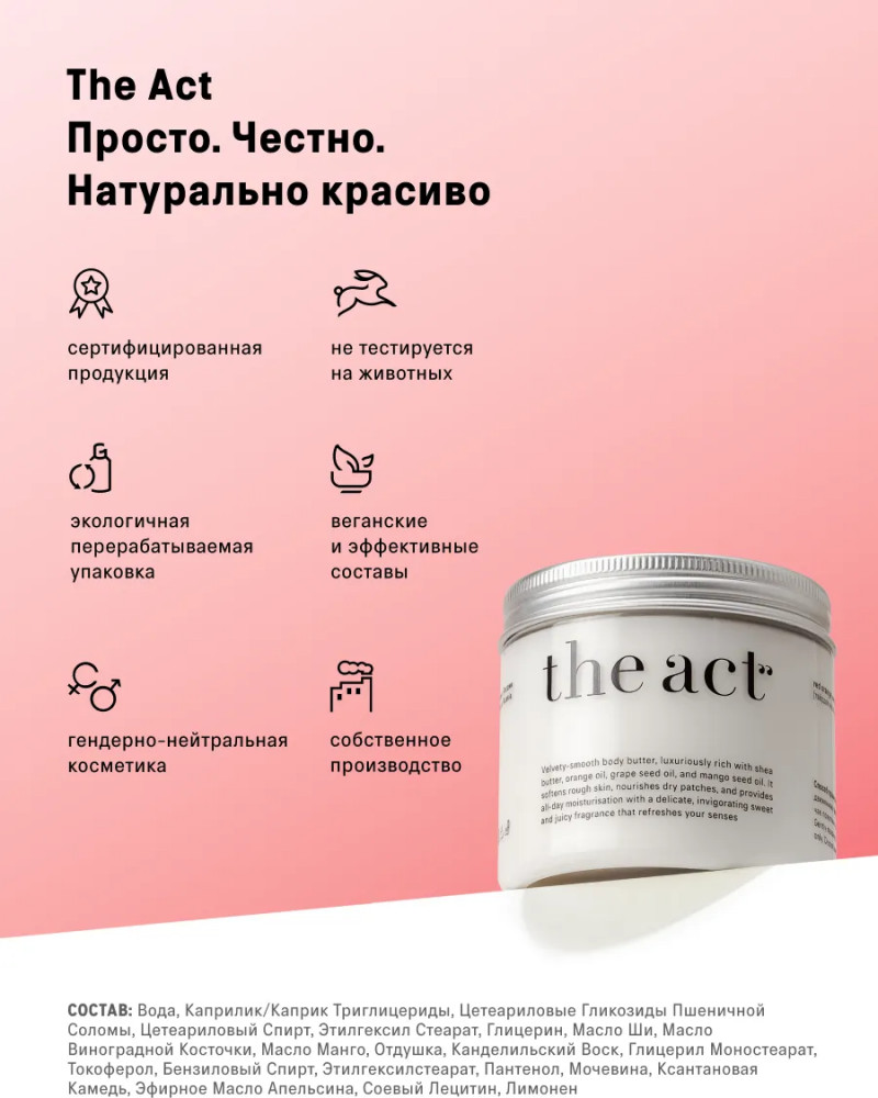 The Act Баттер для тела увлажняющий «Сицилийский апельсин»