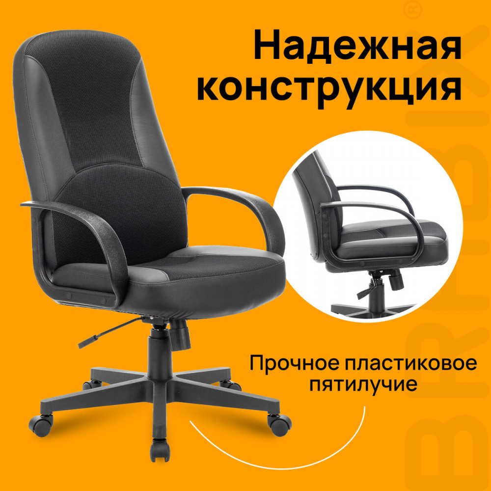 Данная модель способна выдержать нагрузку до 120 кг. Надежный механизм качания «Top Gun» позволяет осуществлять свободное качание с фиксацией в рабочем положении и регулировки усилия качания под вес сидящего. Он помогает обеспечить хорошую поддержку спины и поясницы. Доступное и качественное кресло среднего ценового сегмента. Кресла марки Brabix отличаются современным дизайном, эргономикой, аккуратным исполнением и отличным соотношением цены и качества.