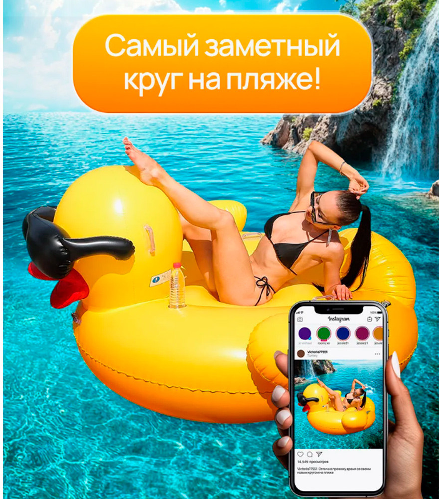 💳 Оплатить за товар можно при получении 🇰🇿 Есть бесплатная доставка по Казахстану от 1 дня 🎁 Копите бонусы с каждой покупки Большой надувной круг для плавания Утка идеален для летнего отдыха на пляже. Яркий, красочный, запоминающийся надувной круг! Потрясающие эмоции и вау фотки с нашим плавательным кругом гарантированы! Круг для бассейна запомнится вам, вашим друзьям и вообще всем на пляже. Большой надувной круг для купания не только красив, но и удобен. Его ширина 170 см — подойдет для взрослых и для детей. Может показаться, что это круг для плавания взрослый, но поверьте, дети тоже оценят! С нашим большим надувным кругом вы сможете хорошенько расслабиться и понежиться под солнцем. Круг плавательный взрослый с ручками — и да, его удобно сдувать и надувать, а значит и легко брать с собой в дорогу. Сделан из прочного ПВХ и не выцветает на солнце! Пополните вашу коллекцию надувных штук для бассейна, и лето пройдет намного веселее! Наша уточка — чистый кайф!! |