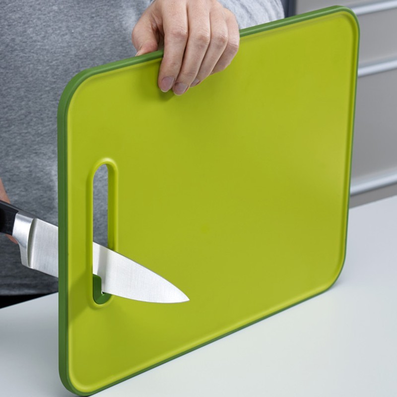 Разделочная доска с ножеточкой Slice&Sharpen™ придет на помощь! Компания Joseph Joseph не перестает покидать зону «инноваций» и удивлять своих покупателей. Износостойкая и прочная разделочная доска, изготовленная из высококачественного пищевого пластика, позволит легко и максимально комфортно нарезать любые фрукты, овощи и другие продукты питания. А если ваш нож вдруг немного затупился – просто поверните доску набок и заточите его с помощью вмонтированной ножеточки. Можно мыть в посудомоечной машине.