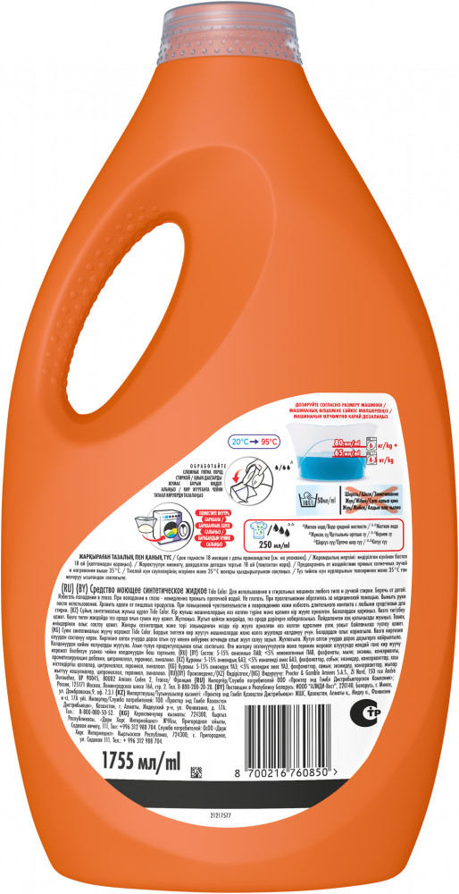 Гель для стирки «Tide Color» предназначен для стирки цветного и белого белья. Жидкий порошок «Tide Color» прекрасно очищает, бережно воздействует на ткань и придает приятный аромат вещам. Гель для стирки белья «Tide Color» дозируется непосредственно в барабан стиральной машины. Благодаря этому активные вещества мгновенно вступают в контакт с водой, эффективно удаляя загрязнения даже на коротких циклах и в холодной воде, не оставляя после стирки следов.