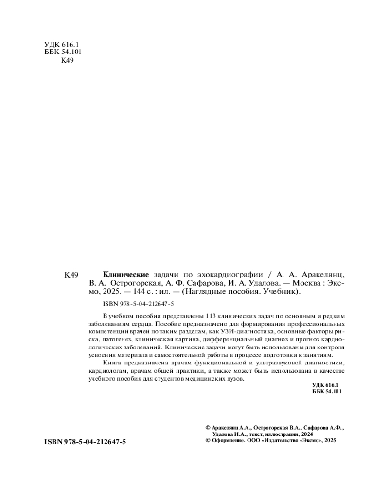 Клинические задачи по эхокардиографииВера Анатольевна Острогорская, Амалия Ашотовна Аракелянц, Ирина Аркадьевна Удалова