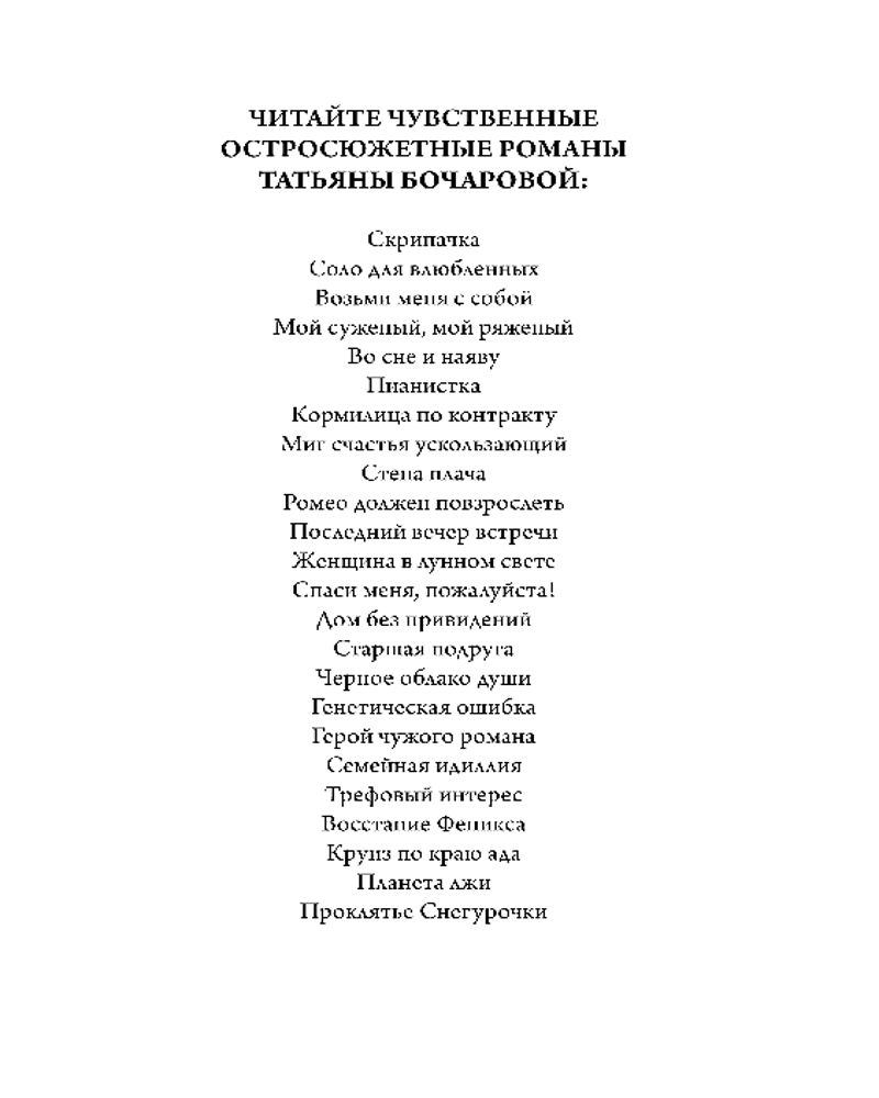 💳 Оплатить за товар можно при получении 🇰🇿 Есть бесплатная доставка по Казахстану от 1 дня 🎁 Копите бонусы с каждой покупки Серия: Детектив сильных страстей. Романы Т. Бочаровой. Новое оформление (обложка) Марина искренне любит свою работу, мужа, родителей, учеников и даже свекровь, в ее ближайших планах — стать счастливой матерью. И все в ее жизни идет как надо, пока не происходит трагическое ДТП. Под колесами автомобиля Марины гибнет пешеход, в дальше суд, приговор, колония... С одной стороны, Марина наказана справедливо. С другой — похоже, что авария произошла не случайно. Удастся ли Марине избавиться от клейма убийцы? Ведь вернуть ее к нормальной жизни на свободе может только тот, кто и отправил в тюрьму... |