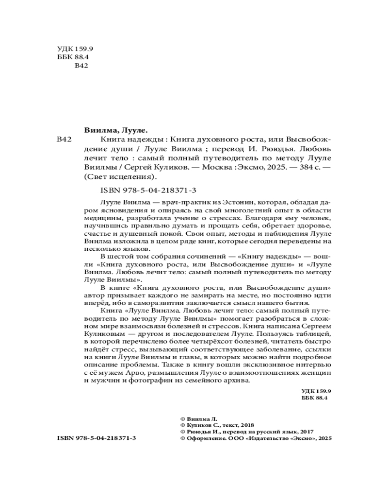 Книга надежды. Книга духовного роста, или Высвобождение души. Лууле Виилма. Любовь лечит тело: самый полный путеводитель по методу Лууле Виилмы-30% +39
