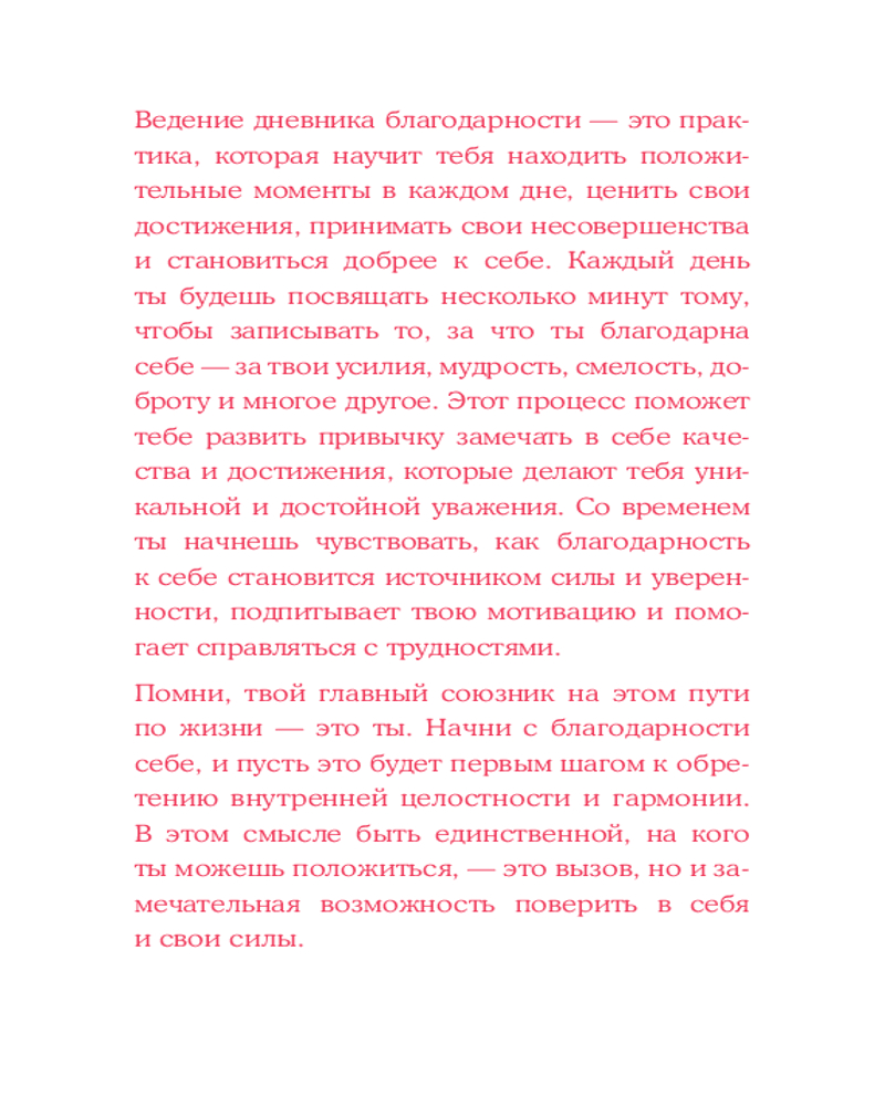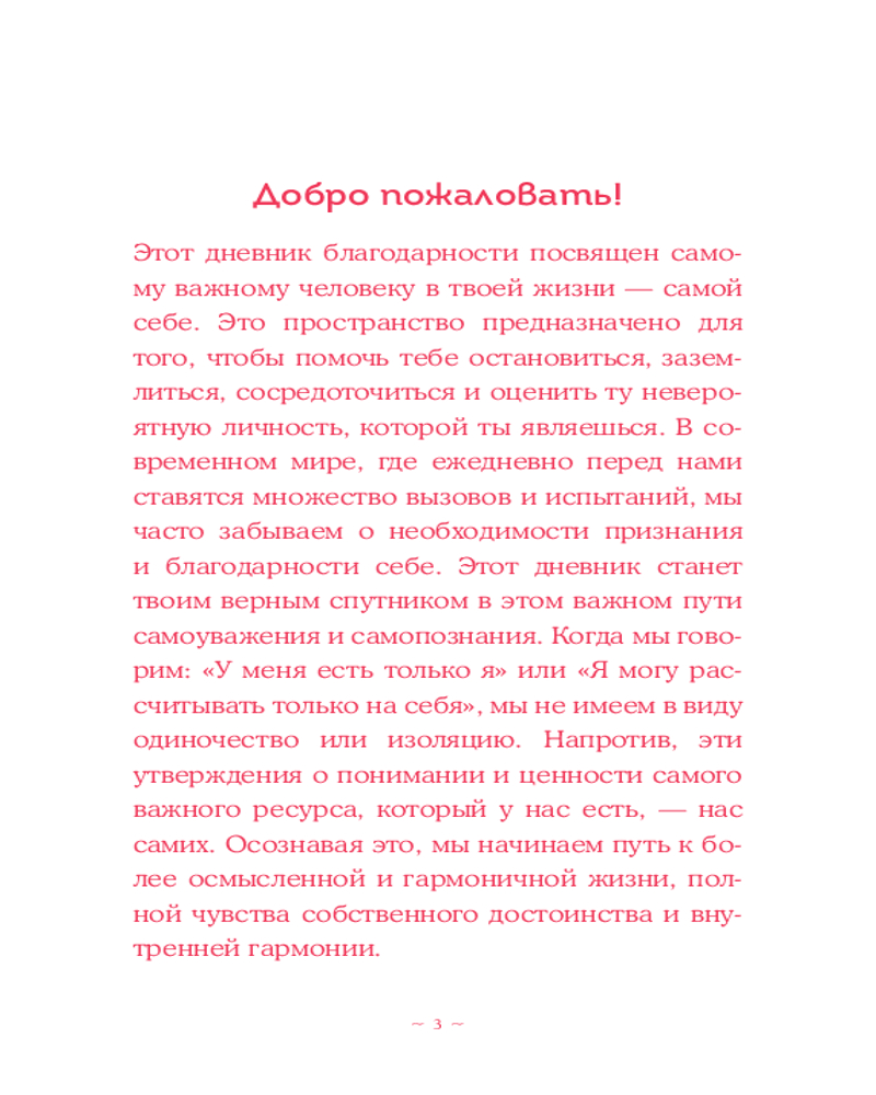 💳 Оплатить за товар можно при получении 🇰🇿 Есть бесплатная доставка по Казахстану 🎁 Копите бонусы с каждой покупки Серия: Живи для себя! Дневники осознанной любви к себе В современном мире мы часто забываем о необходимости признания и благодарности себе. Этот дневник благодарности посвящён самому важному человеку в твоей жизни — ТЕБЕ. Здесь нет места стыду или привычке обесценивать свои достижения. Он создан для тех, кто устал ждать уважения извне и готов стать себе главной поддержкой и опорой. Он предназначен для того, чтобы помочь тебе остановиться, заземлиться, сосредоточиться и оценить ту невероятную личность, которой ты являешься. Этот дневник станет твоим верным спутником в этом важном пути к самоуважению и самоценности. |