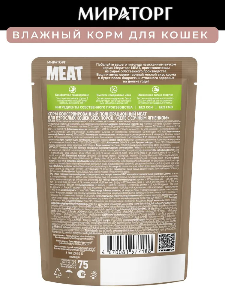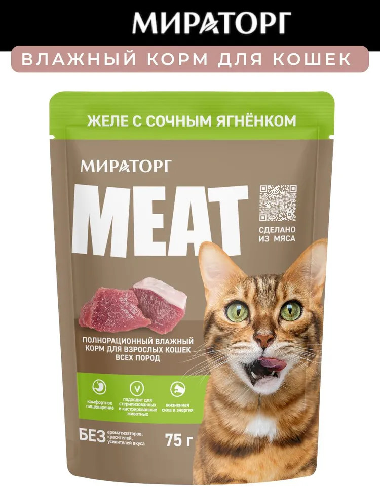 Meat Корм консервированный полнорационный для взрослых кошек всех пород «Желе с сочным ягненком»