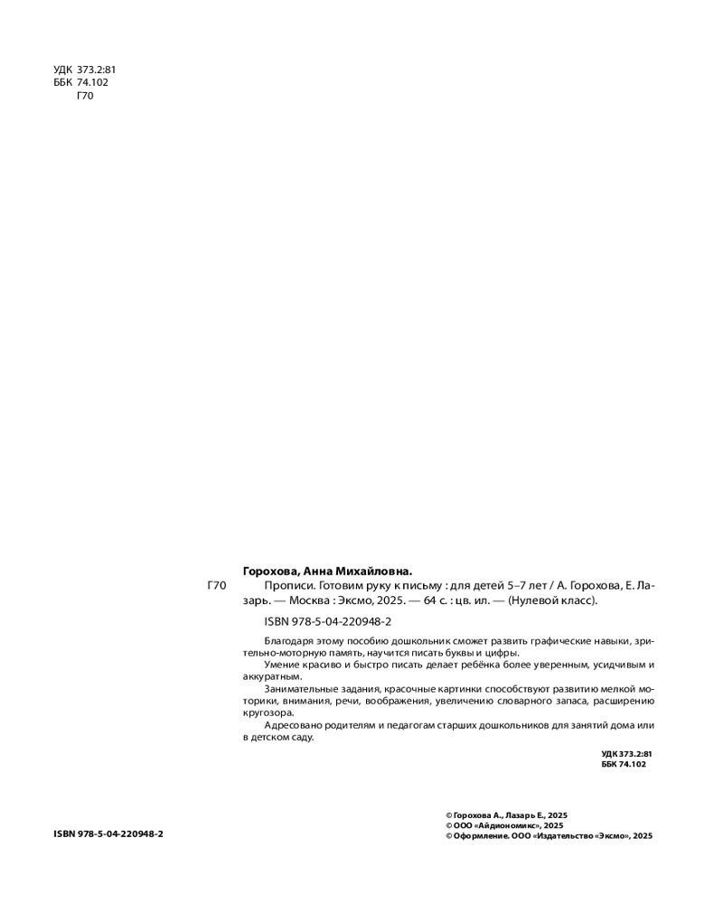 Прописи. Готовим руку к письму. Для детей 5-7 летЕлена Лазарь, Анна Михайловна Горохова -20% +20