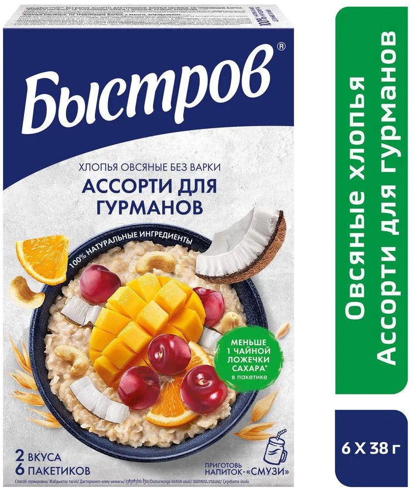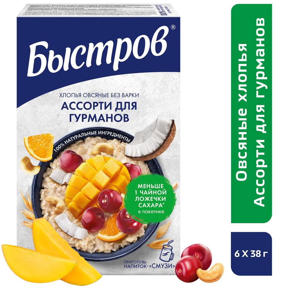Быстров Хлопья овсяные, не требующие варки «Ассорти для гурманов»