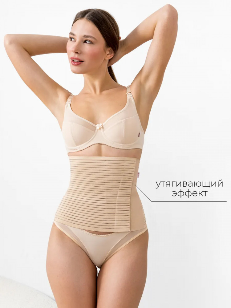 Его рекомендуется использовать не только, как бандаж после кесарева сечения, но и как бандаж для похудения. Эффективно выполняет функцию утяжки живота. Корсет послеродовой утягивающий изготовлен из качественных материалов. Фиксирует и укрепляет мышцы живота, создавая красивую фигуру у женщин. При отсутствии противопоказаний, послеродовой бандаж утягивающий следует начинать носить с первых дней после родов, ежедневно, в течение полутора месяцев. Во время сна применять специальное белье не рекомендуется. Изготовлен в виде широкого корсетного пояса, корректирует область живота и талию способствует восстановлению фигуры, помогает для похудения. Степень утягивания регулируется при помощи застежки «велькро», известной всем как «липучка». Воздухопроницаемая ткань приятно прилегает к телу и не раздражает шов. Высота бандажа 30 см.
