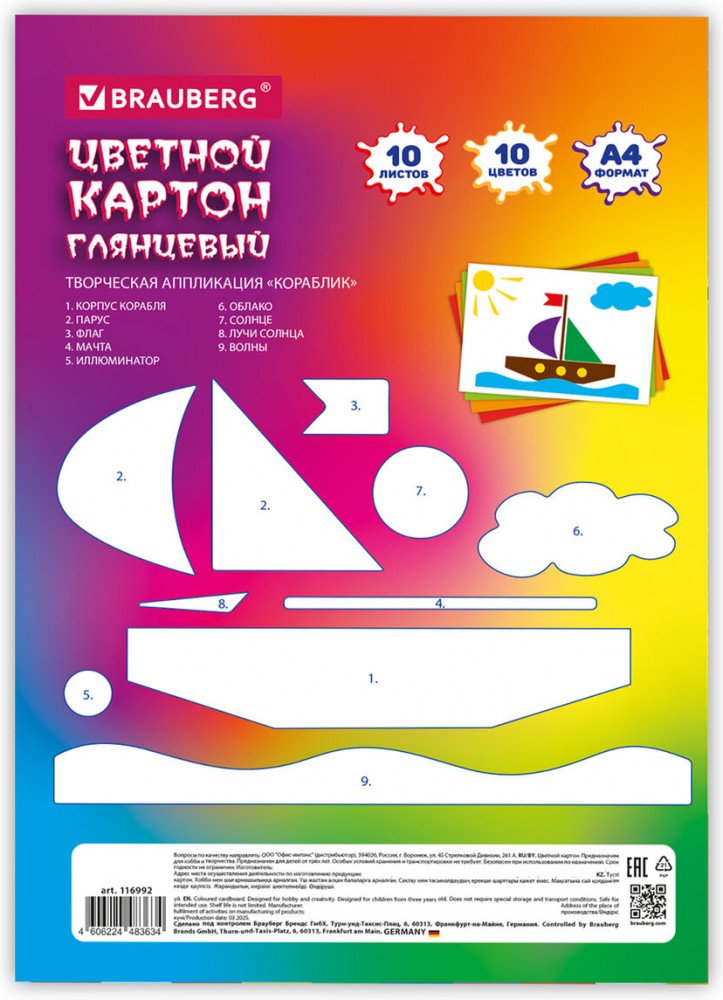 💳 Оплатить за товар можно при получении 🇰🇿 Есть бесплатная доставка по Казахстану от 1 дня 🎁 Копите бонусы с каждой покупки Набор цветного картона BRAUBERG предназначен для творчества и хобби и может использоваться с 3-х лет. Идеально подойдет для ребенка и поможет ему сделать прекрасную поделку. Мелованный картон с улучшенной прокраской обладает плотностью 200 г/м2. Легко режется ножницами, сгибается и клеится. Внутренний блок состоит из 10 листов формата А4 (200×290 мм) и 10 цветов: 8 основных + золото и серебро. Цветной картон незаменим при создании аппликаций, поделок и открыток, рекомендован для уроков труда и технологии. Создайте первые шедевры с товарами для детского творчества BRAUBERG! |