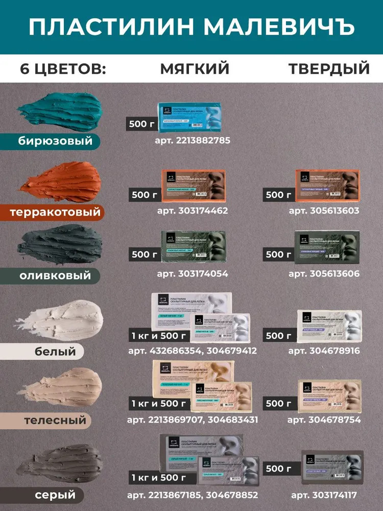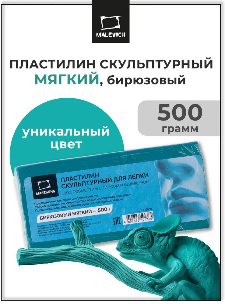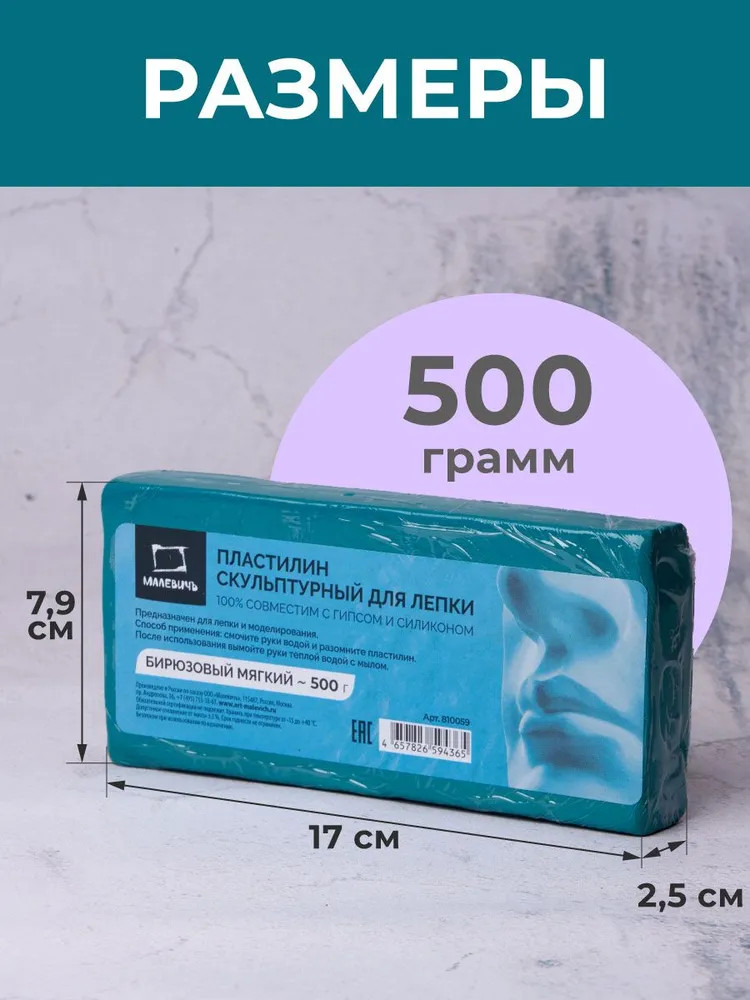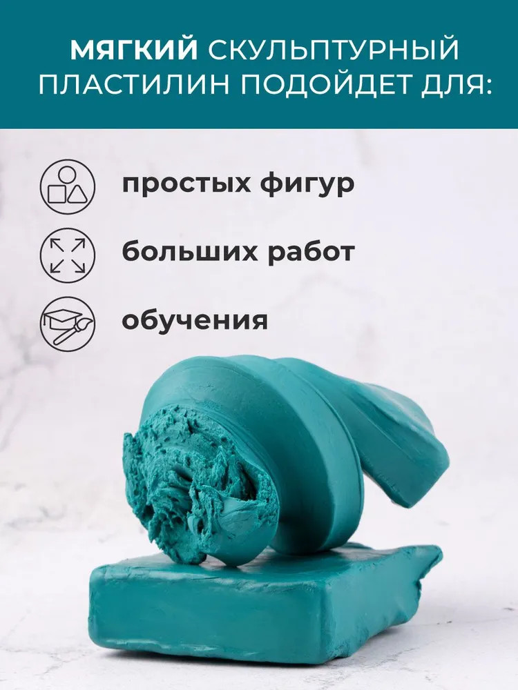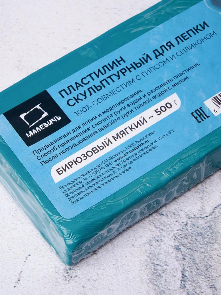 МалевичЪ Пластилин скульптурный мягкий, бирюзовый