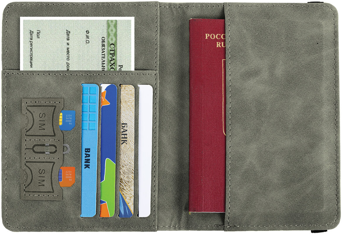 • основной карман для паспорта — подходит как для российского, так и для заграничного;