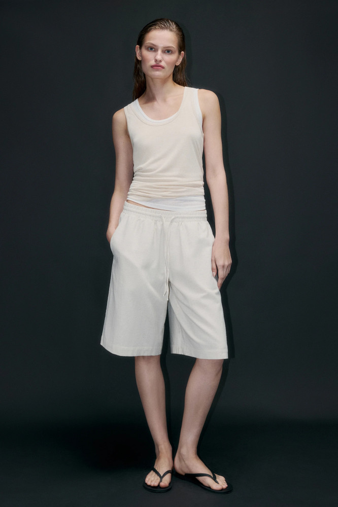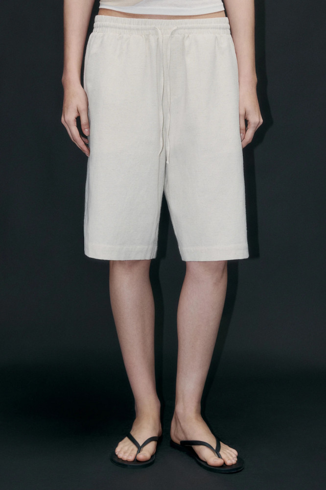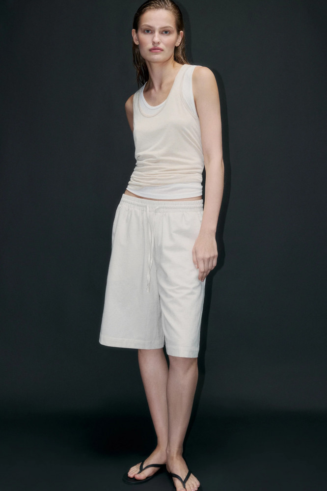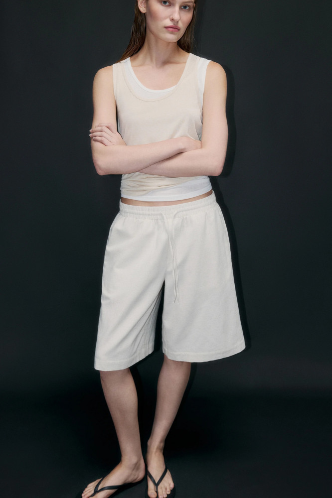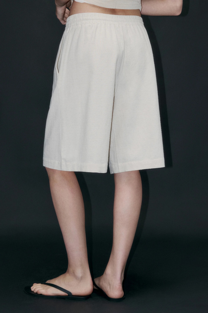 - Короткие женские шорты свободного прямого кроя из легкой, дышащей ткани на основе хлопка и вискозы с добавлением льна - Классическая средняя посадка выгодно подчеркивает фигуру и акцентирует внимание на талии. Эластичный пояс-резинка на завязках. Два боковых кармана с отрезным бочком. Короткие штанины выше колена без разрезов и декоративных элементов - Стильные и очень легкие широкие шорты из мягкой ткани для стильных и женственных аутфитов на каждый день или по особым поводам. Для повседневных луков дополни их своим любимым верхом. Или короткими топами для более соблазнительных вечерних аутфитов. Трендовые однотонные шорты идеально подойдут на теплое время года. Обязательно возьми шорты в отпуск на море или за город.