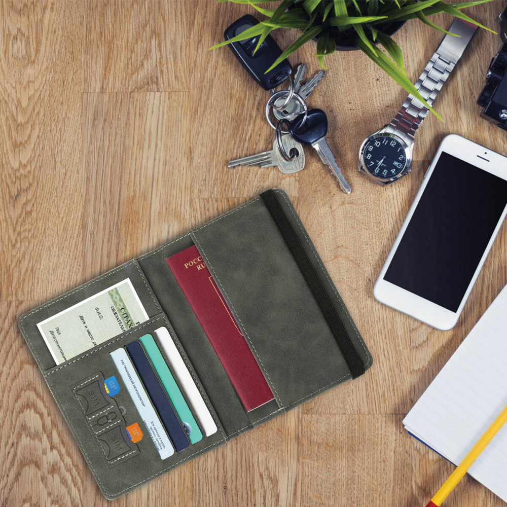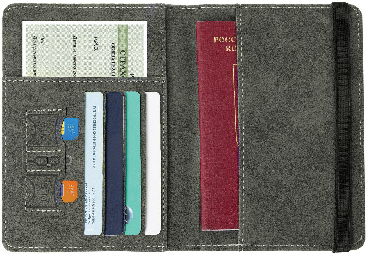 Обложка оснащена RFID защитой — специальной подкладкой, которая блокирует внешний сигнал и препятствует считыванию данных с карточек. Важным преимуществом является то, что обложка плотно фиксируется многожильной прочной резинкой. Этот многофункциональный аксессуар удобен в путешествиях и повседневной жизни, позволяя хранить все важные документы в одном месте.