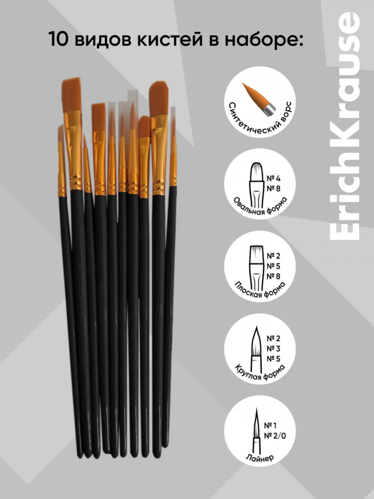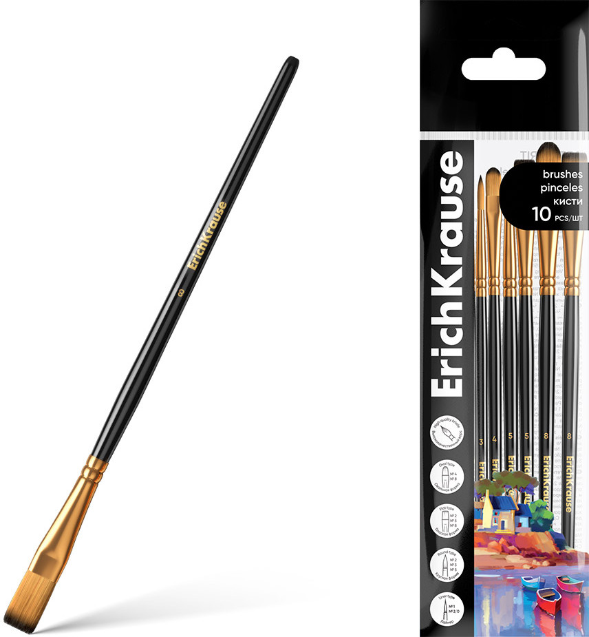 Erich Krause Набор кистей для рисования и декорированияВ данный момент этот товар отсутствует в продаже. Возможно, у нас найдется аналогичный или похожий товар здесь. Серия: Art Spirit Кисти из синтетического ворса для рисования и декорирования. Кисти из синтетики. |