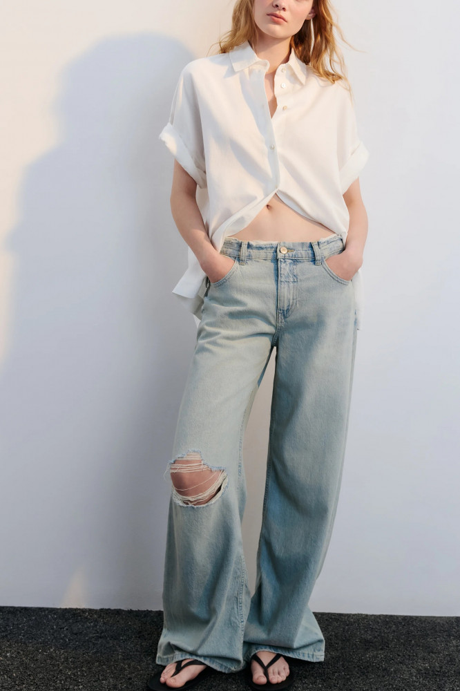 - Женские широкие джинсы-трубы wide leg из легкого 100% хлопкового денима - Классическая средняя посадка подчеркивает фигуру и акцентирует внимание на талии. Длинные прямые штанины, расклешенные от бедер, с рваным коленом и декоративными рваными элементами на поясе и карманах. Классические джинсовые пять карманов с металлическими заклепками спереди. Застежка на молнию и пуговицу спереди, шлевки для ремня - Рваные летние джинсы вайд для расслабленных повседневных и уличных луков с любимым верхом. Создавай самые удобные и стильные аутфиты на каждый день с этими трендовыми рваными джинсами, которые идеально подойдут также для высоких девушек. Сочетай их с хлопковым верхом из новой коллекции Befree, чтобы добавить вайба dolce vita в образы на разные случаи жизни