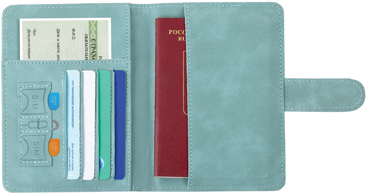 • основной карман для паспорта — подходит как для российского, так и для заграничного;