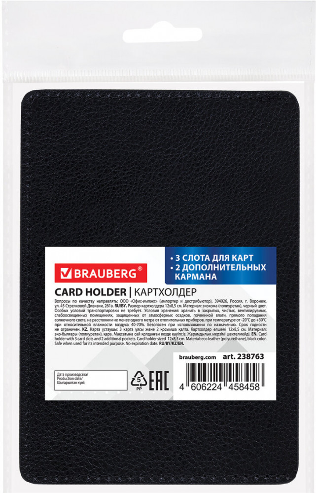 💳 Оплатить за товар можно при получении 🇰🇿 Есть бесплатная доставка по Казахстану от 1 дня 🎁 Копите бонусы с каждой покупки Картхолдер Brauberg защитит карты от внешних воздействий и царапин, а также послужит стильным аксессуаром в дополнение к образу. |