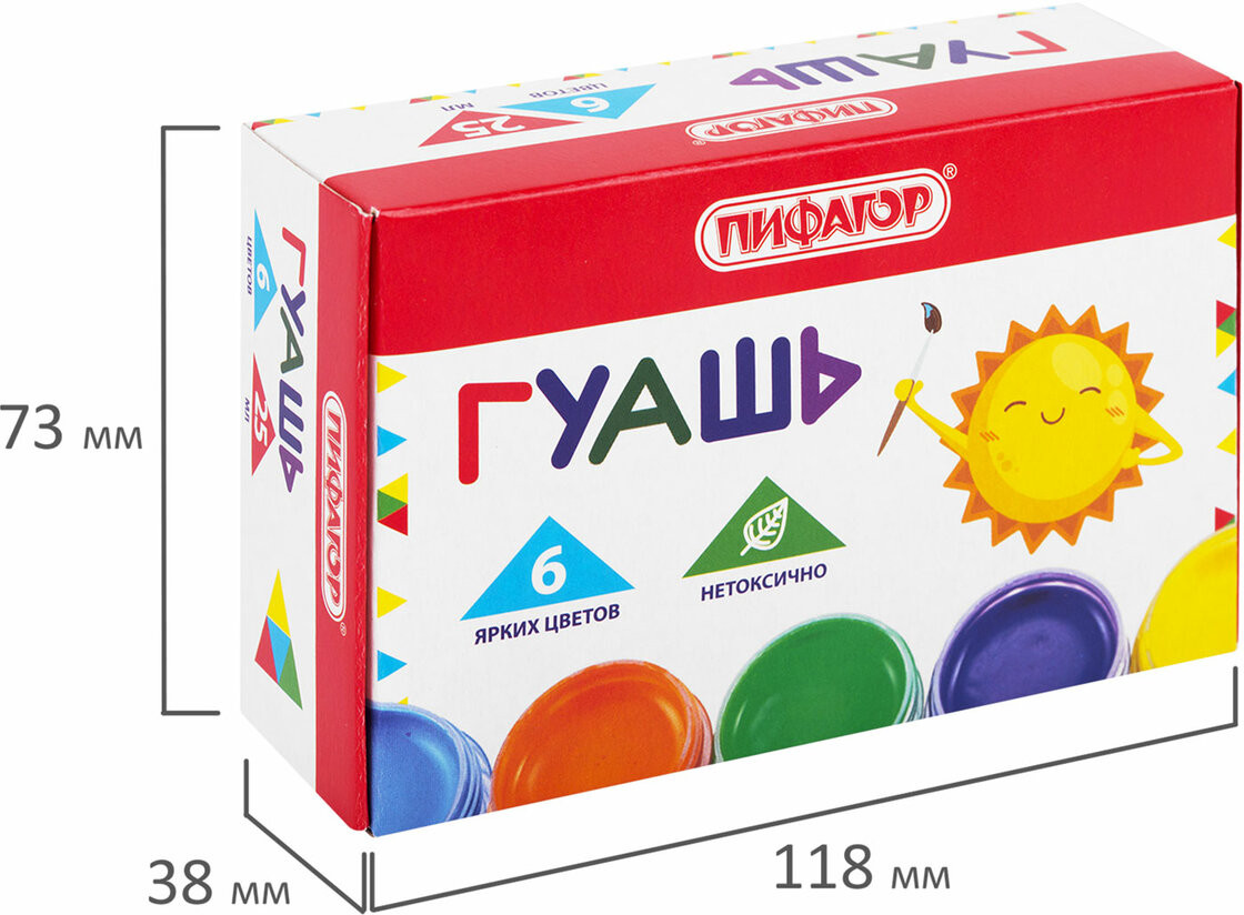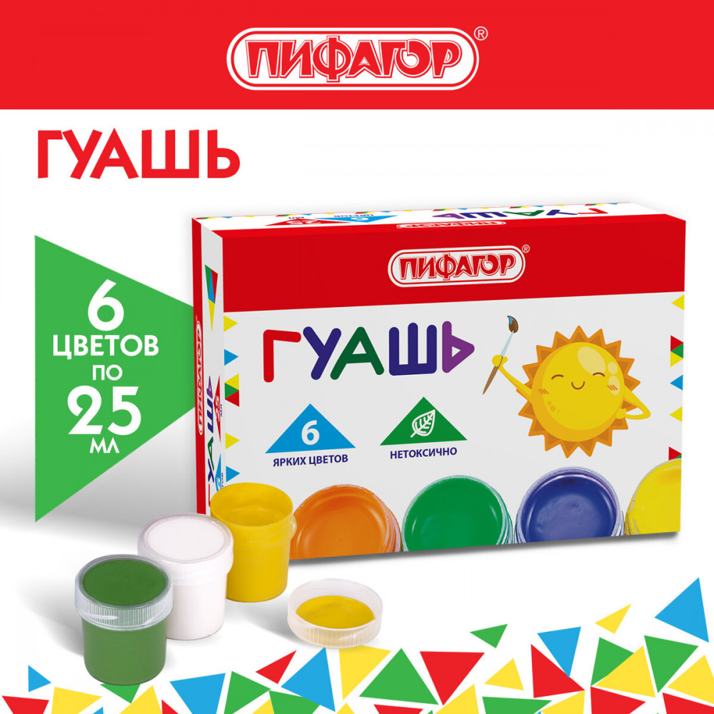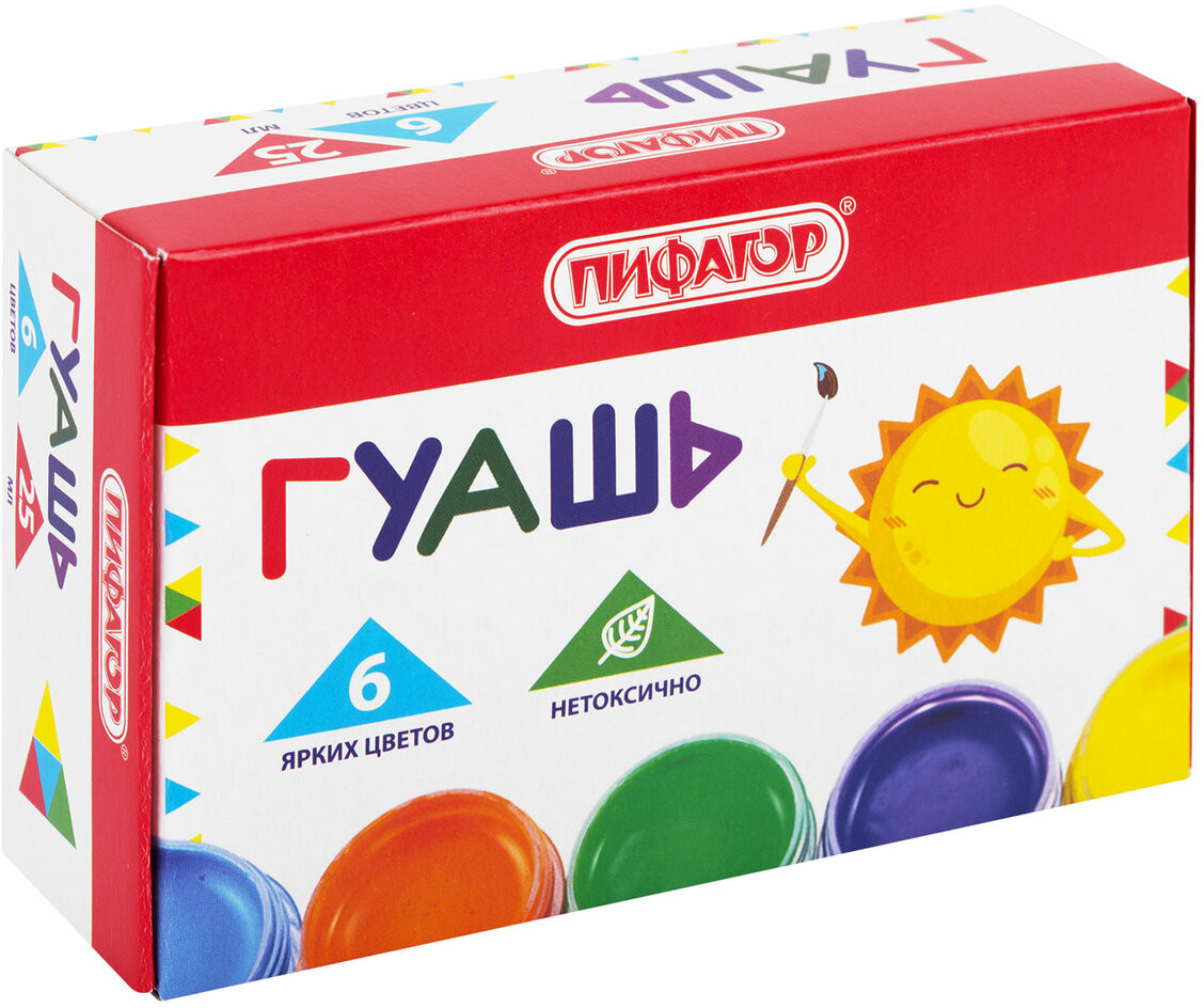 💳 Оплатить за товар можно при получении 🇰🇿 Есть бесплатная доставка по Казахстану от 1 дня 🎁 Копите бонусы с каждой покупки Гуашь Пифагор «Солнышко» отлично подойдет для школьников младших и средних классов, начинающих свой творческий путь на уроках рисования. Хорошо наносится на бумагу, картон, дерево, стекло, керамику. В наборе 6 ярких цветов: белый, черный, красный, желтый, синий, зеленый. |