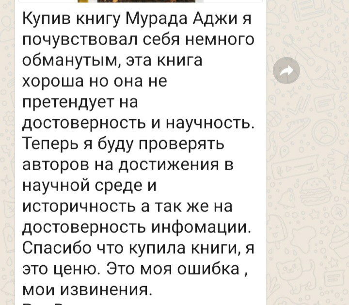 Ребёнок сильно разочарован🤷♀️ Он попросил, я заказала)) Он у меня если книга ему понравилась может прочесть за неделю... Как только желанная книга попадает ему в руки он бросает всё и начинает читать. Так и в этот раз. В 4 утра когда мы все уже видели 7 сон и оказывается отправил мне сообщение на Whats app. Видать не выдержал. Я заскринила сообщение сына и решила добавить в коменты🤦♀️😄