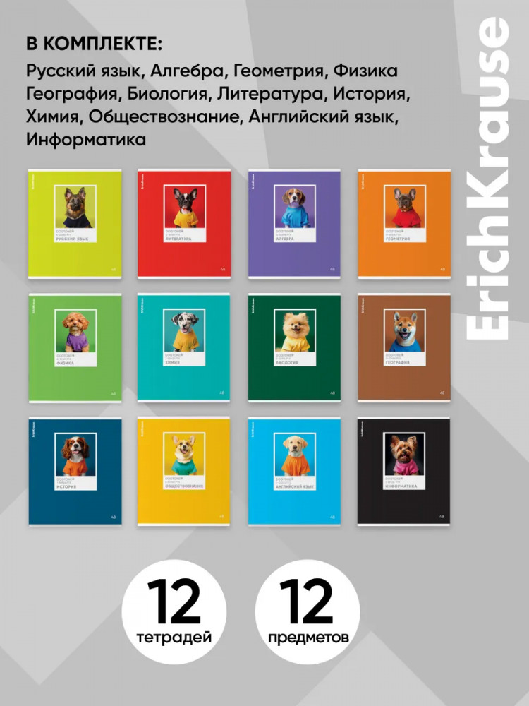💳 Оплатить за товар можно при получении 🇰🇿 Есть бесплатная доставка по Казахстану от 1 дня 🎁 Копите бонусы с каждой покупки Серия: DogTone Комплект тетрадей по 12 основным учебным предметам: русский язык, литература, алгебра, геометрия, физика, химия, биология, география, история, обществознание, английский язык, информатика. Удобный вариант для приобретения на целый учебный год или в подарок. Каждая тетрадь объемом 48 листов имеет инфо-блок с кратким изложением школьной программы. Упаковка — картонная обечайка в термоусадочной пленке. |