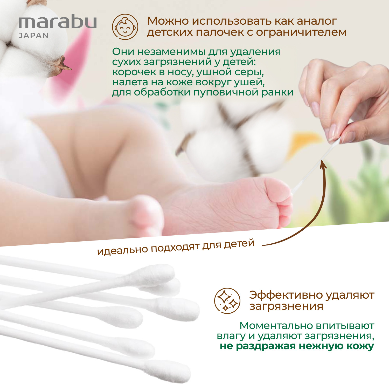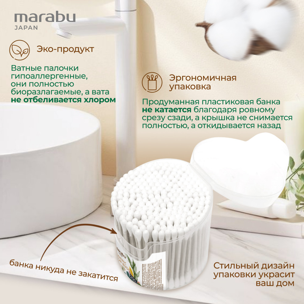 Палочки ватные гигиенические | Botanica | Marabu