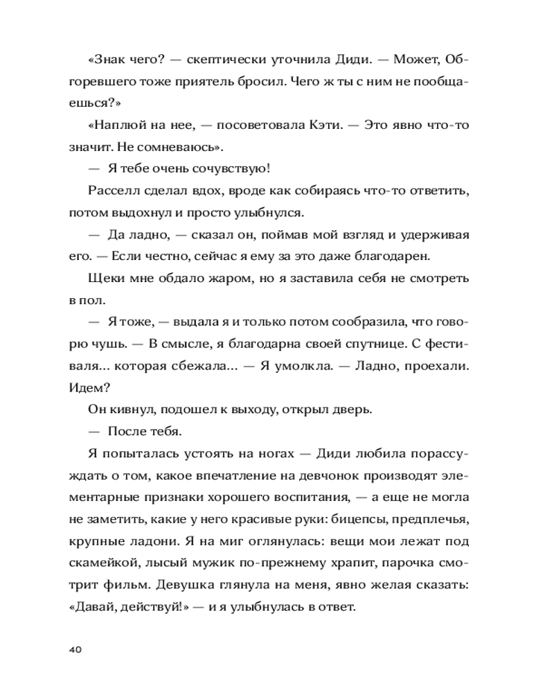 💳 Оплатить за товар можно при получении 🇰🇿 Есть бесплатная доставка по Казахстану от 1 дня 🎁 Копите бонусы с каждой покупки Дарси верит в любовь с первого взгляда и всю жизнь ждет встречи с тем, кто покорит ее сердце. Однажды вечером, после музыкального фестиваля, она застревает на автовокзале из-за поломки автобуса. Ждать следующего придется до утра, у Дарси разряжен телефон и впереди целая ночь в одиночестве... Но тут она знакомится с Расселлом. Он симпатичный, остроумный и определенно ей нравится. |