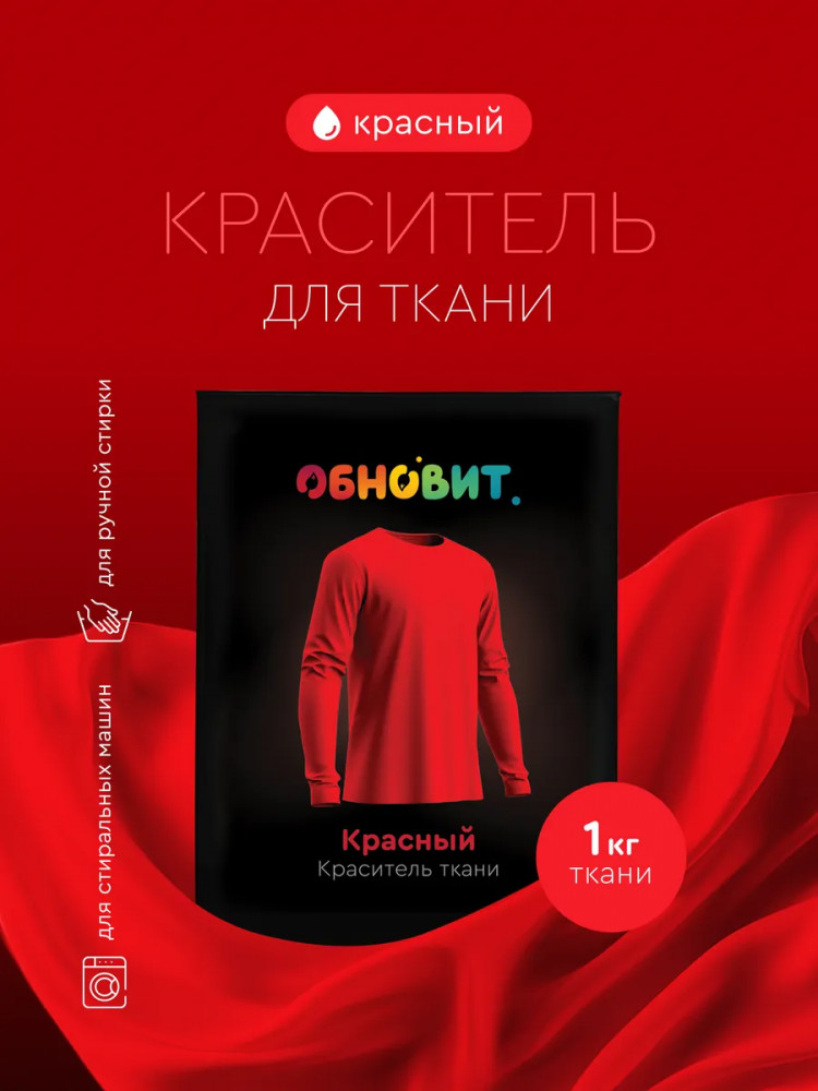 Уважаемые покупатели, внимательно сверяйте состав ткани с изображением выкраски изделий. В зависимости от типа ткани, результат может отличаться. Краситель «Обновит» для ткани весом 20 г является универсальным красителем для натуральных тканей, таких как хлопoк, лён, вискоза, шерсть и шёлк. Он также может использоваться для смесовых тканей, содержащих не более 30% синтетических материалов. Краситель даёт яркие и стойкие цвета. Каждая упаковка содержит 2 пакетика по 10 г красителя, которых достаточно для окрашивания 1 кг чистой сухой ткани.