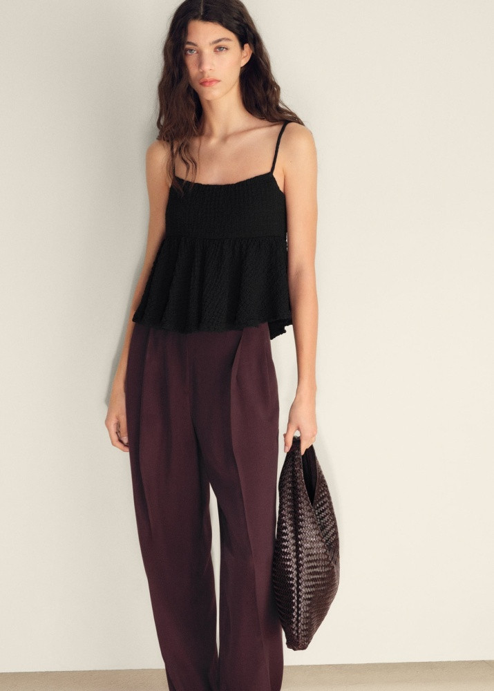 Женский топ Mango — идеальный выбор для создания элегантного и в то же время повседневного образа. Благодаря лаконичному крою и тщательно продуманным деталям, модель подчёркивает женственность и утончённый вкус. Мягкая приятная к телу ткань обеспечивает комфорт в течение всего дня, а универсальный дизайн позволяет легко сочетать топ как с классическими брюками и юбками, так и с джинсами и шортами.