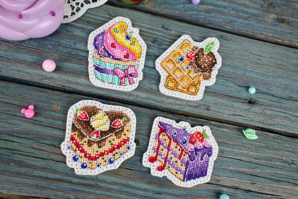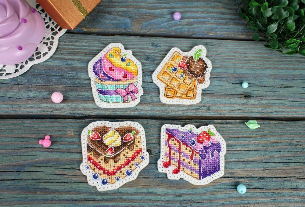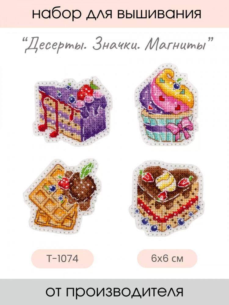 Набор для вышивания магнитов-значков на перфорированном фетре Десерты представляет собой уникальную возможность создать красивую и оригинальную вышивку с минимальными усилиями. Готовые магниты или значки станут яркими и оригинальными аксессуарами, которые поднимут настроение и украсят любое пространство.
