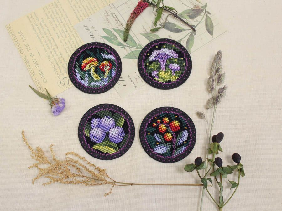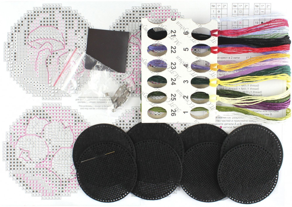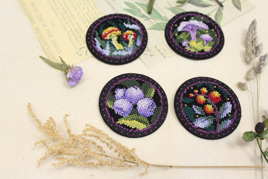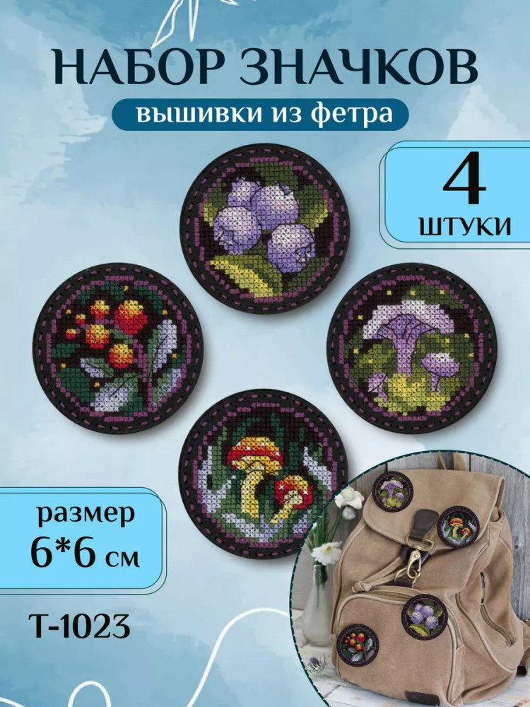 Создайте оригинальные магниты или значки с вышивкой мулине Лесные сюжеты — это увлекательно и просто. В работе не потребуются даже пяльцы, достаточно владеть техникой крест и точно следовать инструкции. На плотном фетре уже нанесена перфорация, поэтому стежки получатся аккуратными, с одинаковым наклоном. Готовый сувенир станет уютной деталью интерьера или отличным подарком.