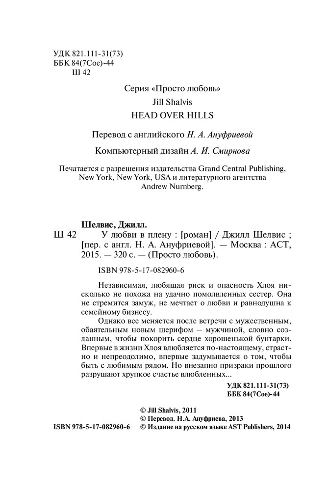 У любви в пленуВ данный момент этот товар отсутствует в продаже. Возможно, у нас найдется аналогичный или похожий товар здесь. Серия: Просто любовь Независимая, любящая риск и опасность Хлоя нисколько не похожа на удачно помолвленных сестер. Она не стремится замуж, не мечтает о любви и равнодушна к семейному бизнесу. Однако все меняется после встречи с мужественным, обаятельным новым шерифом – мужчиной, словно созданным, чтобы покорить сердце хорошенькой бунтарки. Впервые в жизни Хлоя влюбляется по-настоящему, страстно и непреодолимо, впервые задумывается о том, чтобы быть с любимым рядом. Но внезапно призраки прошлого разрушают хрупкое счастье влюбленных… |