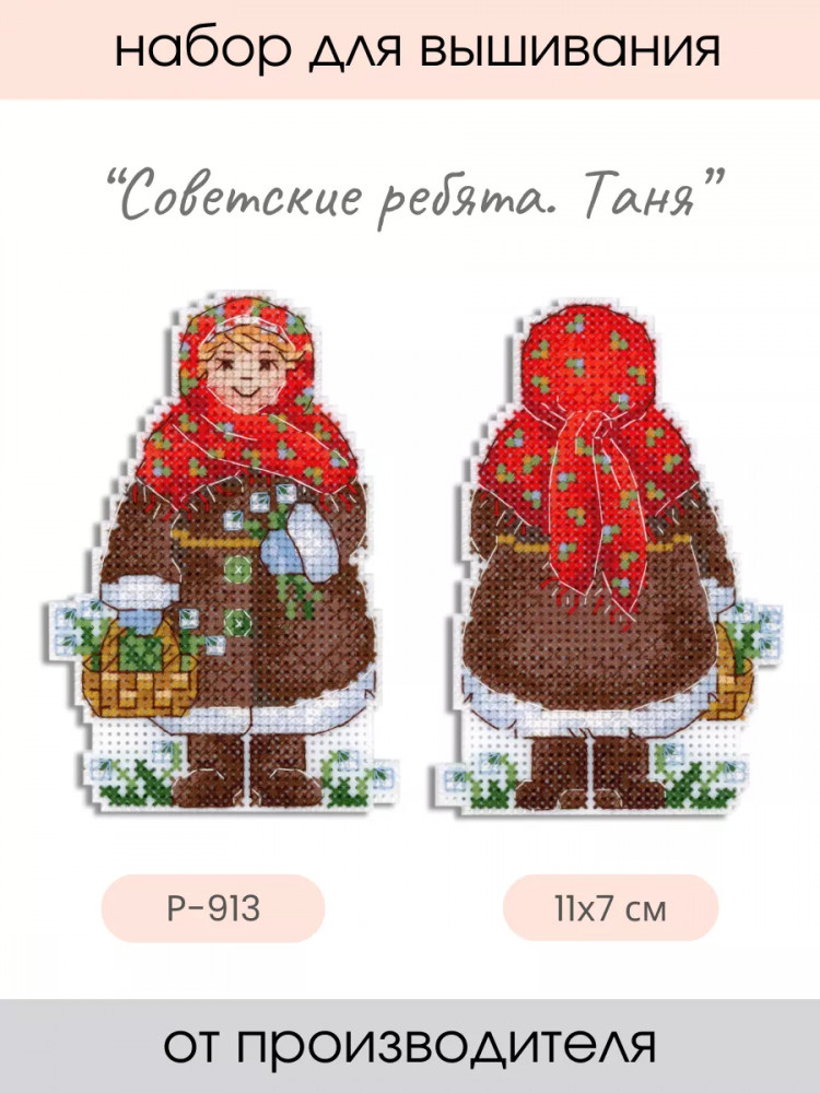 💳 Оплатить за товар можно при получении 🇰🇿 Есть бесплатная доставка по Казахстану от 1 дня 🎁 Копите бонусы с каждой покупки Серия: Советские ребята Сделайте своими руками яркий сувенир «Советские ребята. Таня» — это увлекательно и быстро. Набор подойдет даже начинающим, достаточно проявить терпение, аккуратность и освоить простую технику крест. Пяльцы или рамки не понадобятся — пластиковая канва отлично держит форму. Готовые элементы надо вырезать по контуру и соединить между собой аккуратными стежками. При желании вклейте между деталями ленту-подвес. Украсьте этим сувениром праздничный интерьер или преподнесите его как подарок. |