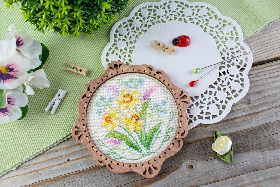 Щепка Набор для вышивания на деревянной основе «Весенние цветы»-20% +97