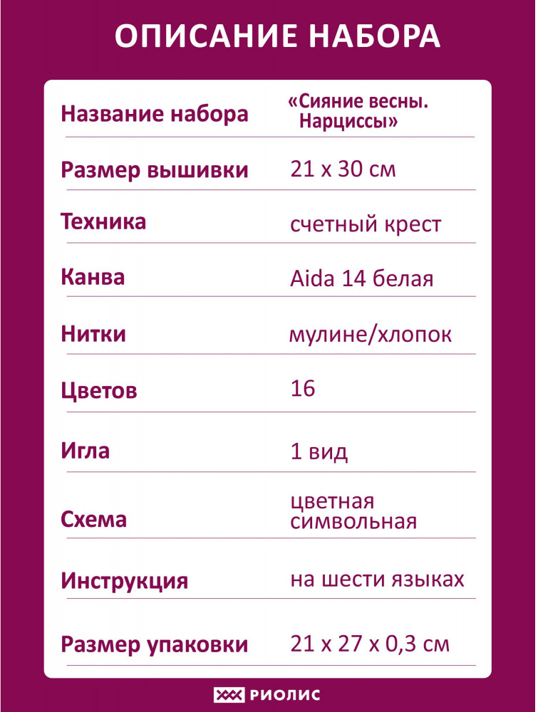 Риолис Набор для вышивания «Сияние весны. Нарциссы»-20% +75