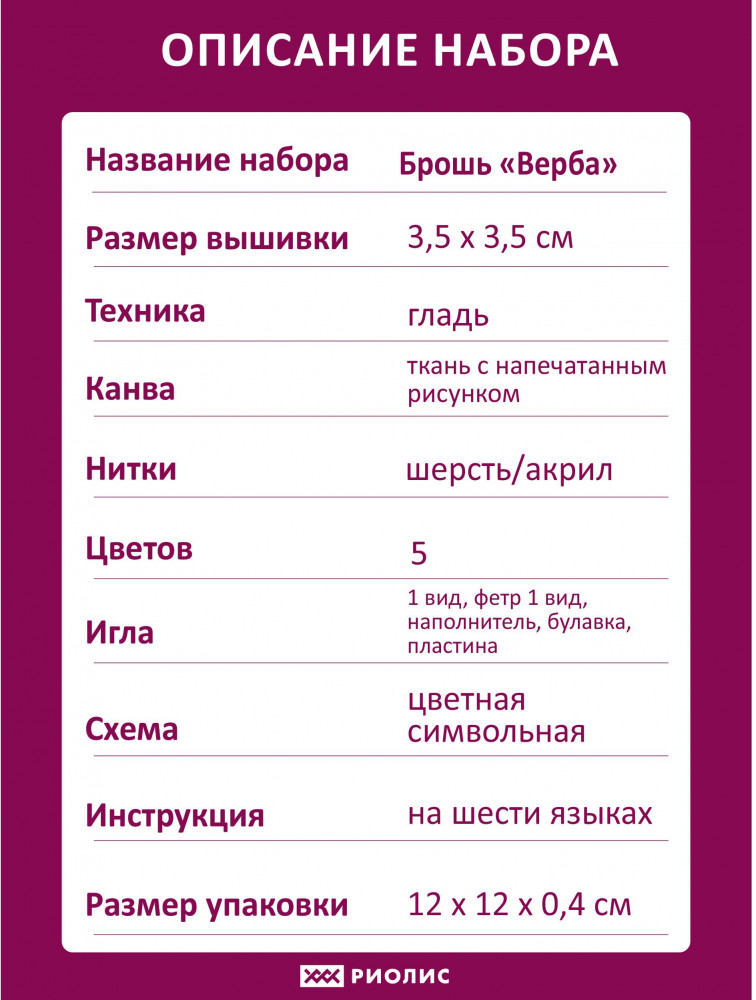 Риолис Набор для вышивания «Брошь Верба»В данный момент этот товар отсутствует в продаже. Возможно, у нас найдется аналогичный или похожий товар здесь. Всё необходимое для изготовления украшения уже есть в наборе. Вам остаётся только внимательно изучить подробную пошаговую инструкцию и создать великолепный аксессуар, который точно будет в центре внимания. Набор для вышивания в технике гладь — это превосходный выбор для тех, кто ценит творчество, рукоделие и хобби. Отлично подходит как для начинающих, так и для опытных вышивальщиц. Вышивка броши своими руками — увлекательное занятие и прекрасный способ расслабиться и отдохнуть. Вы сможете создать уникальное и неповторимое украшение, которое будет напоминать о ваших талантах и ручной работе, и прекрасный подарок маме бабушке сестре подруге на Новый Год, день рождения, новоселье и 8 марта. В этом наборе есть все необходимое для создания красивой броши: канва с напечатанным рисунком, нитки для вышивания мулине, игла, цветная схема и инструкция. |