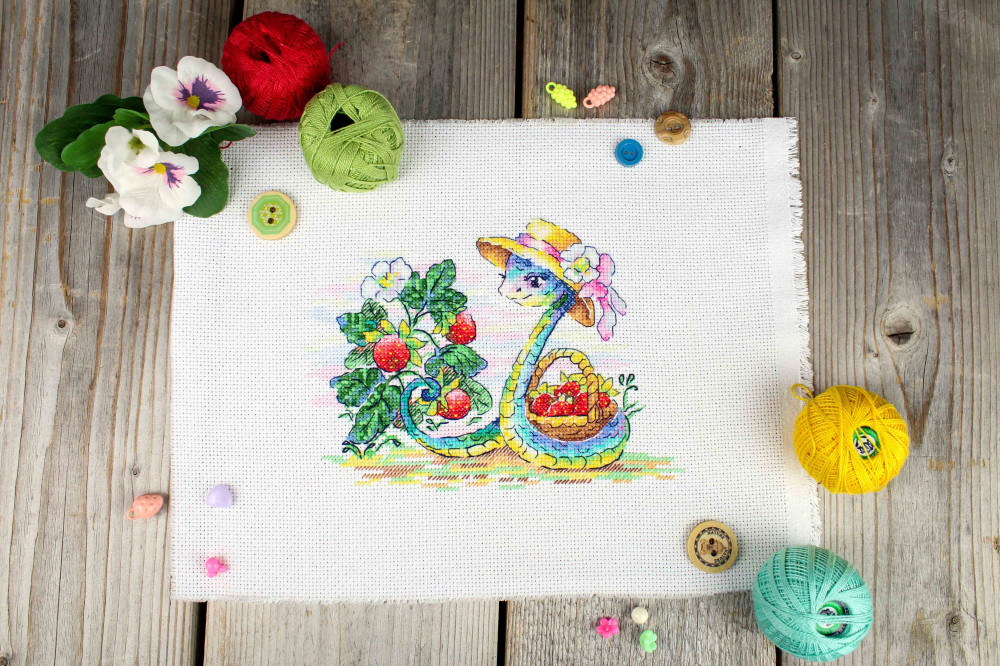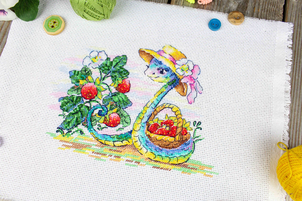 Набор для вышивания «Ягодный урожай» станет настоящим украшением вашей коллекции рукоделия и милым подарком для всех, кто увлекается вышиванием. Этот набор в нежной цветовой гамме, милыми деталями сбора урожая и трогательным сюжетом со змеей, собирающей сочные ягоды, поможет вам перенести атмосферу сказки прямо на вашу вышивку. Каждый шаг вышивания будет наполнен радостью и вдохновением, а готовая работа станет ярким акцентом в вашем интерьере или замечательным подарком для близких.