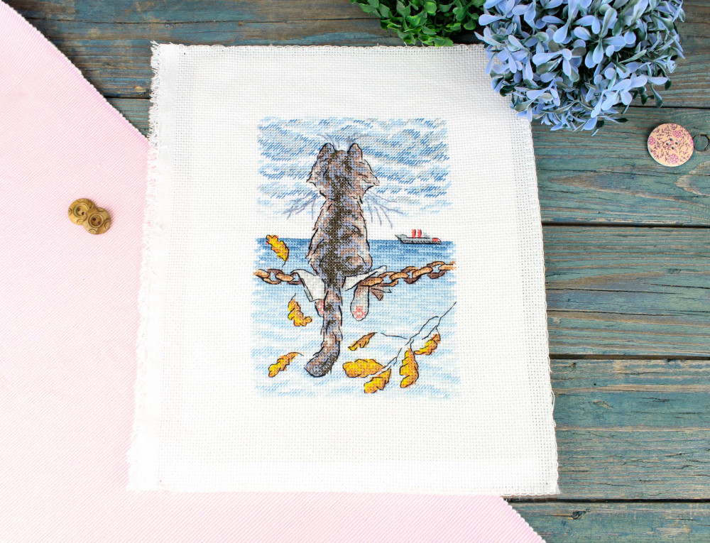 Набор для вышивания «Котомеланхолия» станет настоящим украшением вашей коллекции рукоделия и милым подарком для всех, кто увлекается вышиванием. Вышивка с изображением задумчивого кота на фоне моря прекрасно передаёт атмосферу уединения и размышлений. Каждый шаг вышивания будет наполнен радостью и вдохновением, а готовая работа станет ярким акцентом в вашем интерьере или замечательным подарком для близких.