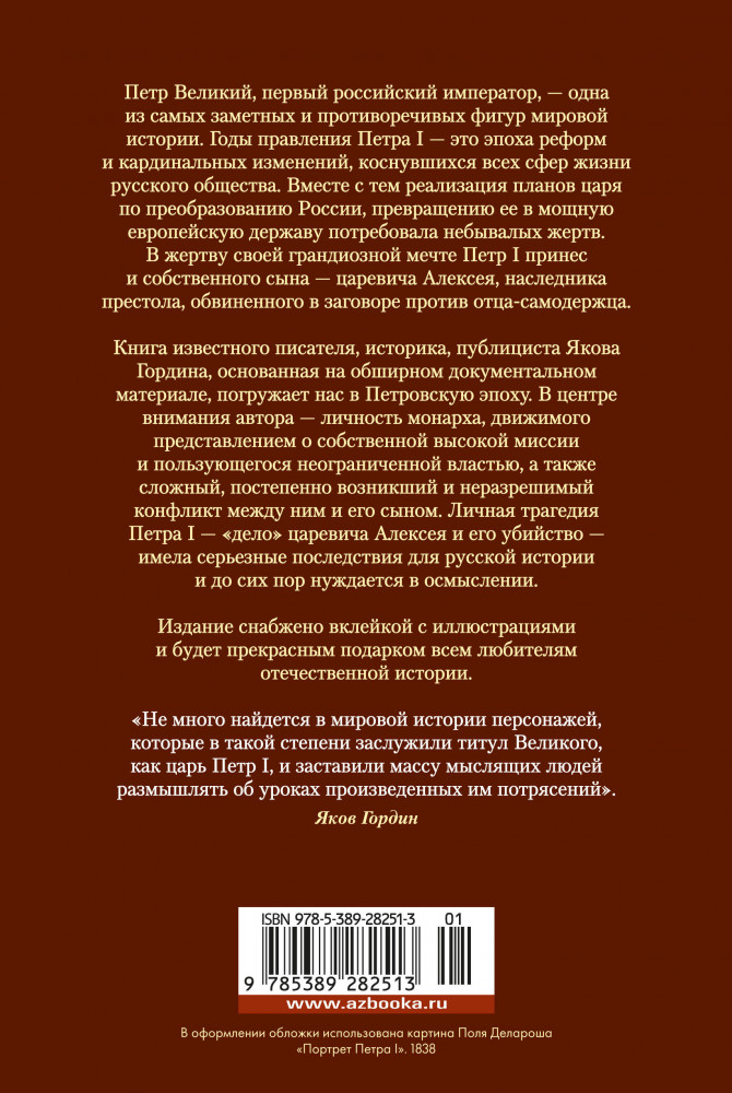 💳 Оплатить за товар можно при получении 🇰🇿 Есть бесплатная доставка по Казахстану от 1 дня 🎁 Копите бонусы с каждой покупки Серия: Non-Fiction. Большие книги Петр Великий, первый российский император, — одна из самых заметных и противоречивых фигур мировой истории. Годы правления Петра I — это эпоха реформ и кардинальных изменений, коснувшихся всех сфер жизни русского общества. Вместе с тем реализация планов царя по преобразованию России, превращению ее в мощную европейскую державу потребовала больших жертв. В жертву своей грандиозной мечте Петр I принес и собственного сына — царевича Алексея, наследника престола, обвиненного в заговоре против отца-самодержца. |