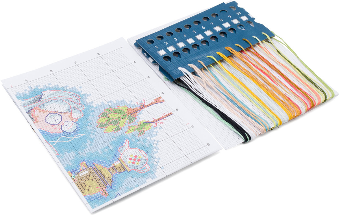 Набор включает в себя все необходимое для начинающих и опытных мастериц: канва Аида 14 каунта (без нанесенного рисунка) белого цвета, хлопковое мулине (23 цвета), цветная символьная схема, инструкция на русском языке, эл.схема Saga. |