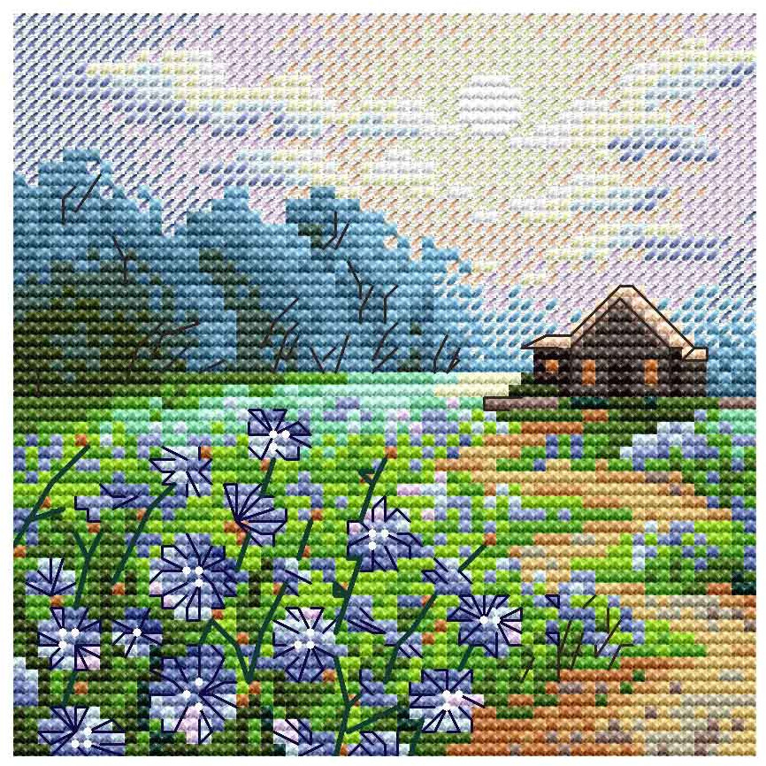 Набор для вышивания «Пейзаж с цикорием» станет настоящим украшением вашей коллекции рукоделия и милым подарком для всех, кто увлекается вышиванием. Вышивка с изображением летнего пейзажа наполнена ощущением спокойствия и гармонии с природой, вызывая желание погрузиться в тихую идиллию деревенской жизни. Каждый шаг вышивания будет наполнен радостью и вдохновением, а готовая работа станет ярким акцентом в вашем интерьере или замечательным подарком для близких.