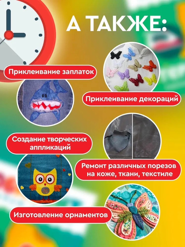 Этот клей для текстиля поставляется в удобной упаковке с закручивающейся крышкой. Он позволяет вам легко решать различные задачи, связанные с текстилем, будь то подгиб подола юбки, платья или низа изделия, ремонт одежды и кожгалантереи, а также починка порезов и дырок на трикотаже, коже и других текстильных изделиях. Клей идеально подходит для приклеивания аппликаций и заплаток, а также для изготовления игрушек. Необходимо отметить, что этот клей обладает такими характеристиками, как прозрачность и универсальность, что делает его удобным и эффективным инструментом для ремонта и творчества. Он также стойкий к стирке при температуре до 40 градусов и обеспечивает надежное склеивание различных материалов, включая ткани, кожу и текстильные изделия. Этот термоплавкий клей для текстиля будет незаменимым инструментом для школьных заданий, рукоделия, декорирования, ремонта одежды и других творческих задач, требующих надежного и эффективного склеивания.