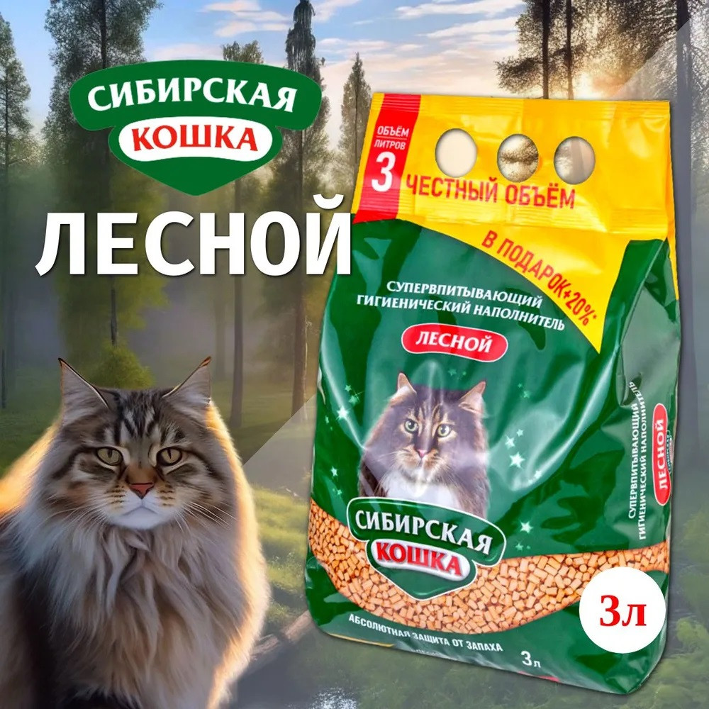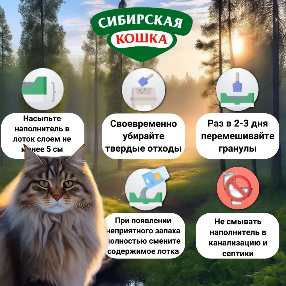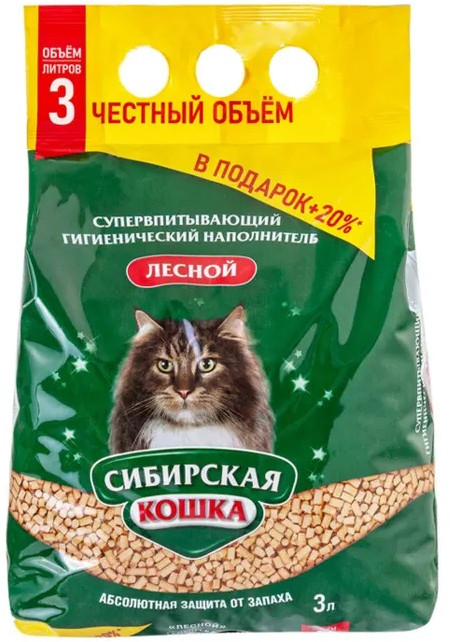 Сибирская Кошка Наполнитель для кошачьего туалета древесный супервпитывающий «Лесной»