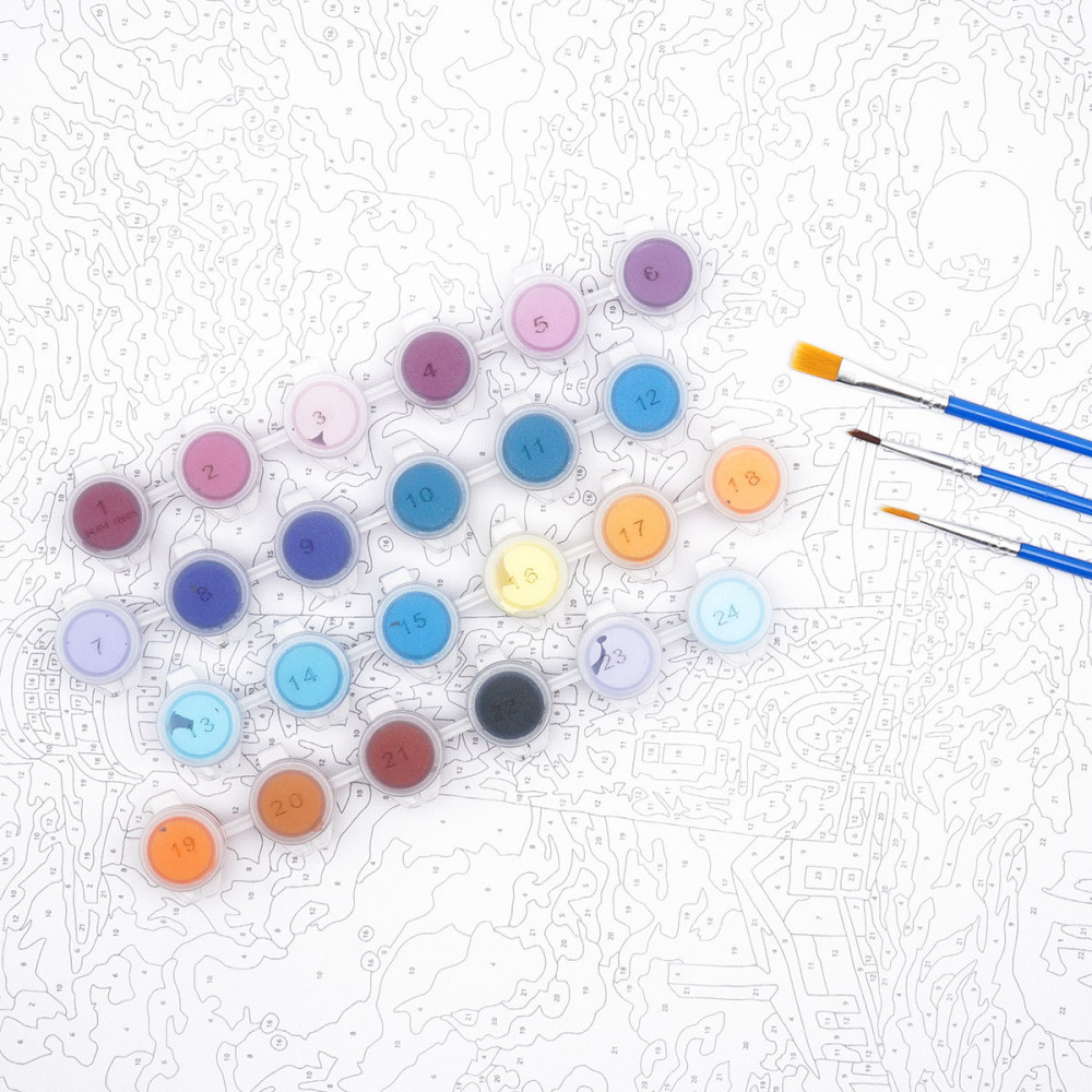 Внутри набора вы найдете холст с нанесенным контуром будущего шедевра. Каждый участок холста имеет свой номер, соответствующий номеру краски в специальной баночке. Вам остается лишь раскрасить каждый сектор, используя ту краску, которая указана для данного номера. Этот процесс не требует никаких дополнительных действий, таких как смешивание или разбавление красок. Рисование по номерам — это простой и увлекательный способ приобщиться к миру искусства. Все оттенки красок тщательно подобраны. Контуры на холсте разработаны опытными художниками и дизайнерами. Это означает, что процесс рисования будет не только увлекательным, но и простым. Набор подходит для людей любого возраста, даже дети смогут с легкостью создать свою картину, ведь он не требует никаких специальных художественных навыков. Картина по номерам на холсте станет отличным подарком для близких или прекрасным элементом декора для вашего дома.